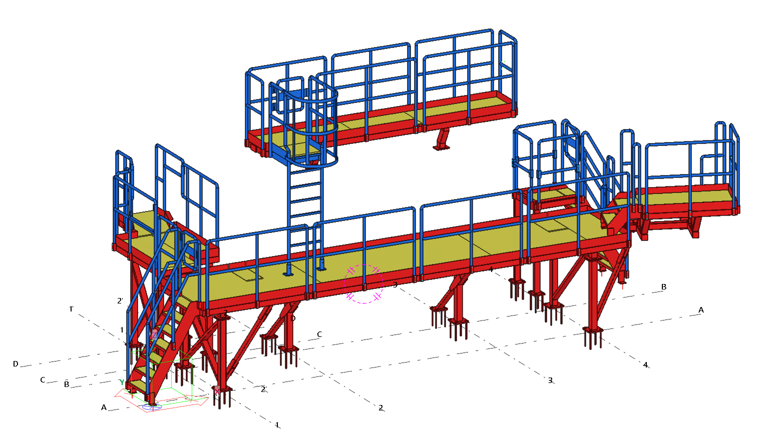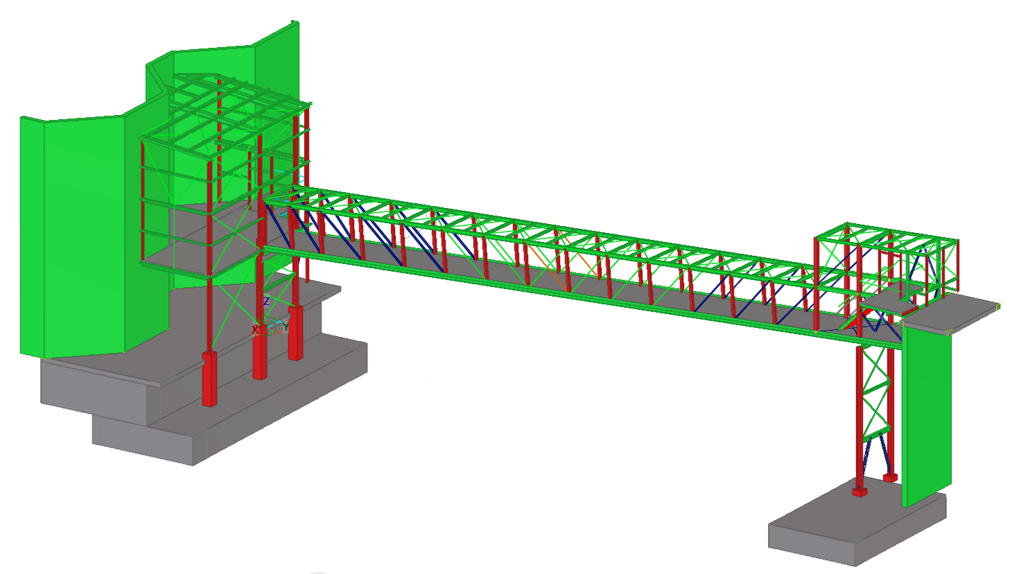 Industrial bridge of aeration installation, planned and designed to match the existing factory buildings. The geometry of the bridge was adjusted on the basis of previously made 3D scans of the existing state.