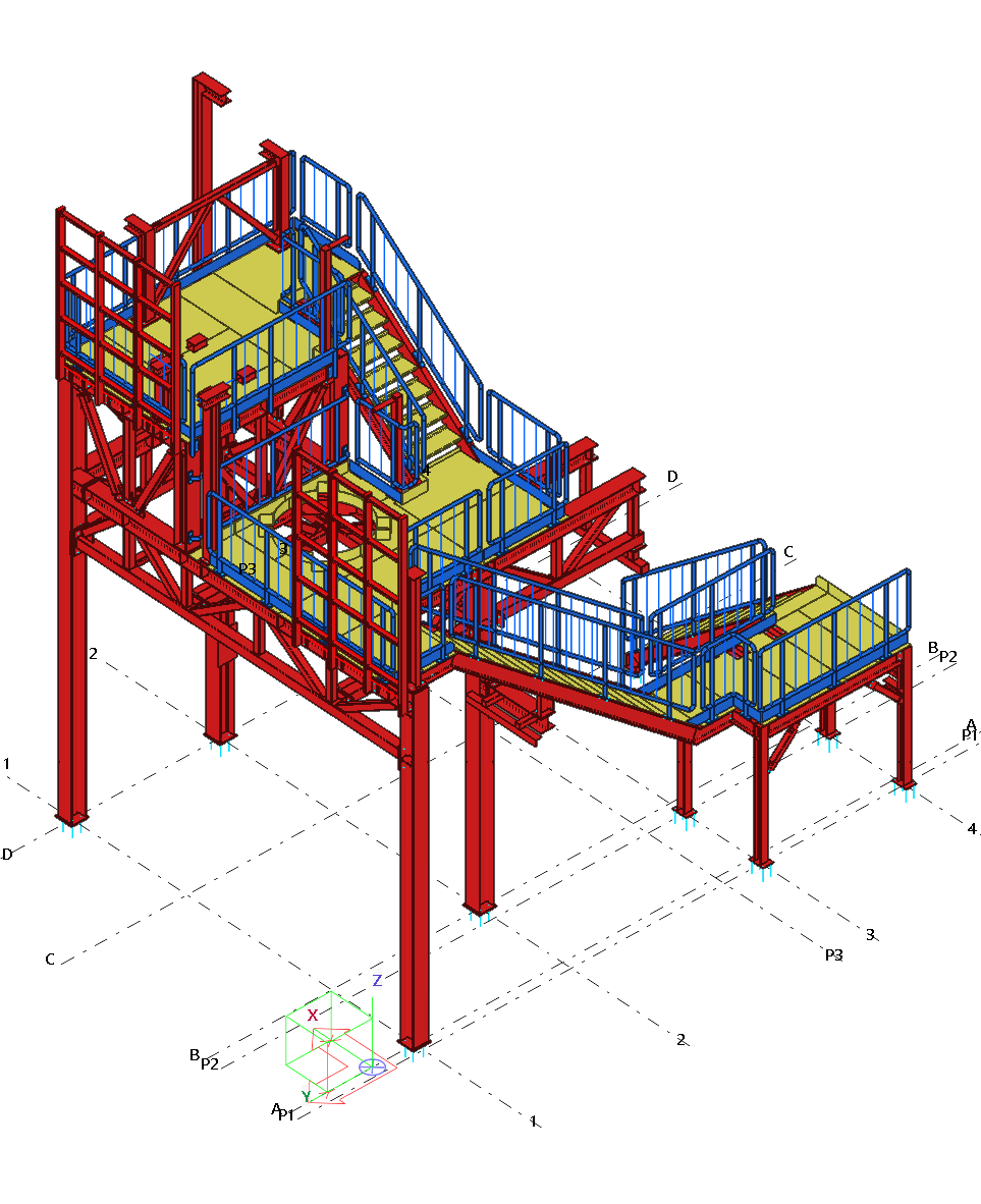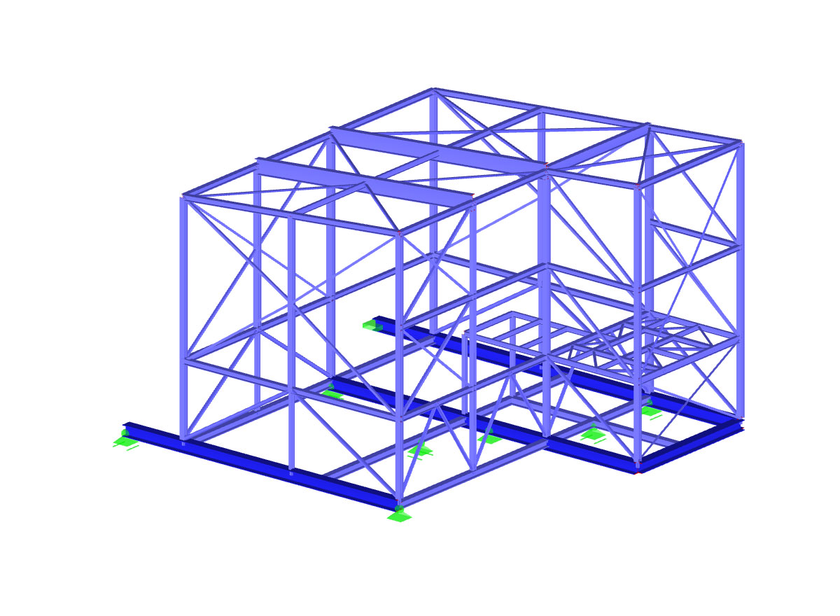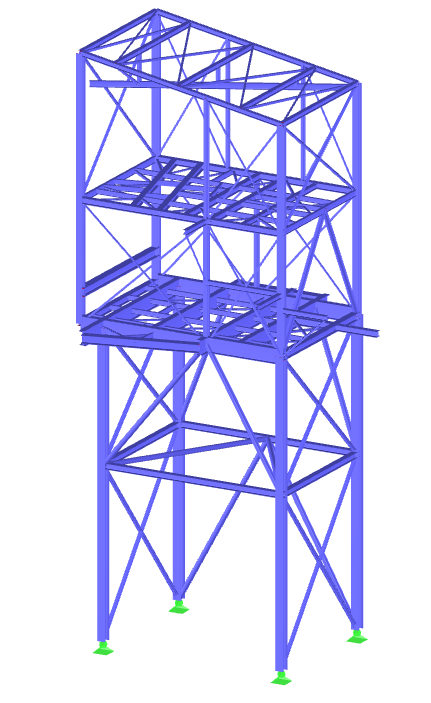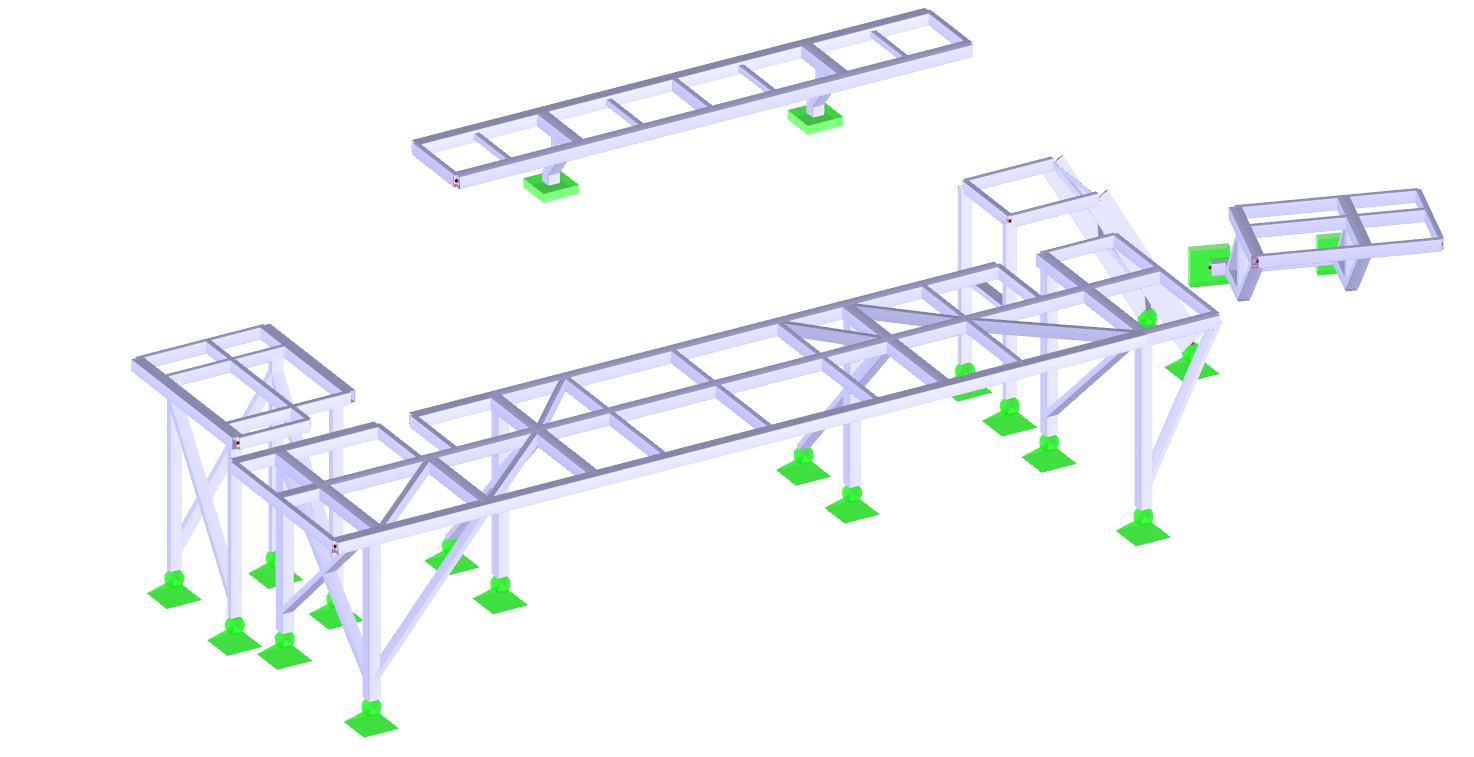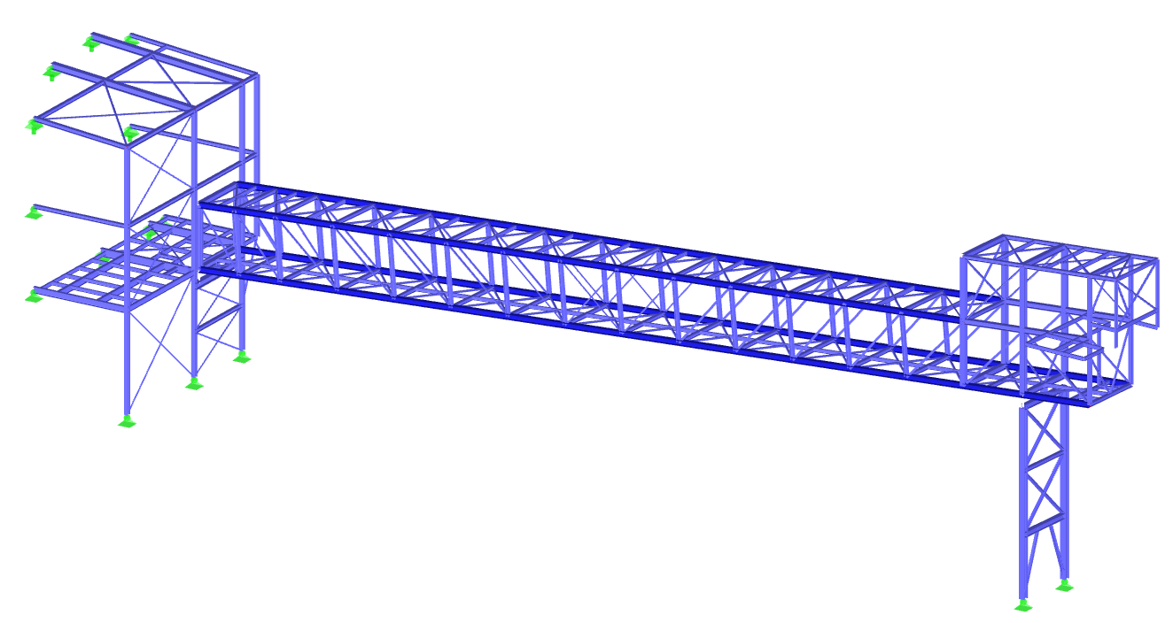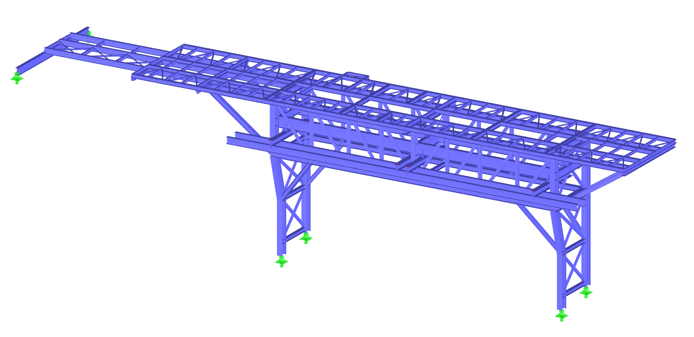 Selected models of the designed industrial structures are presented below. The 3D structural model was made in Tekla Structures and the static calculations in Dlubal RFEM or SCIA Engineer.