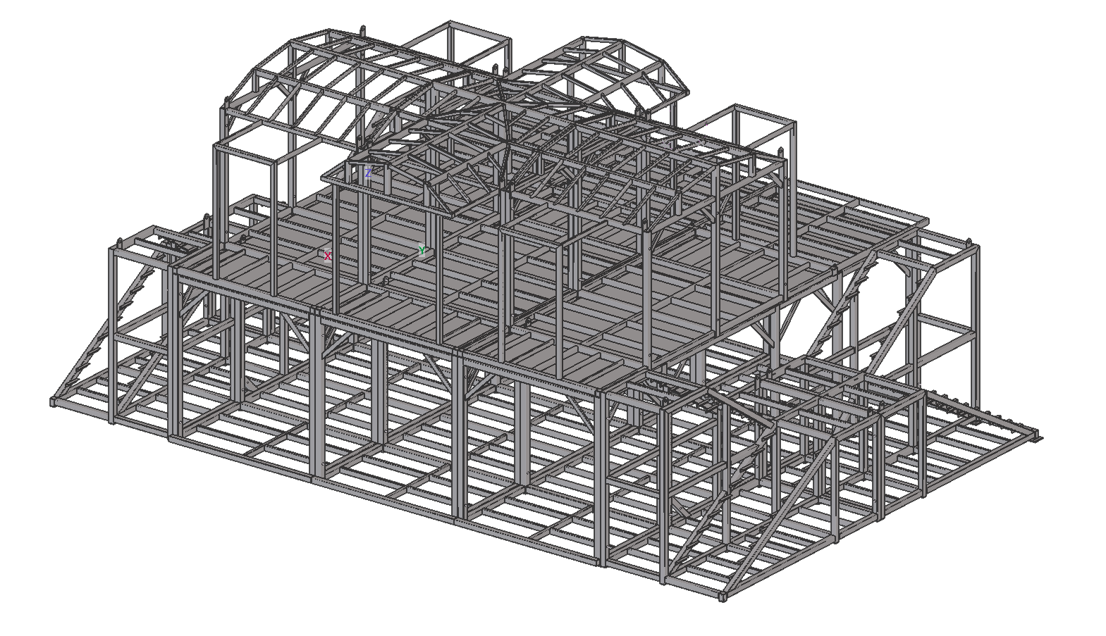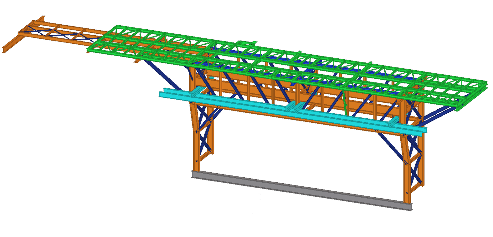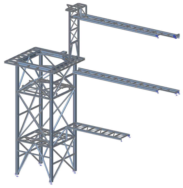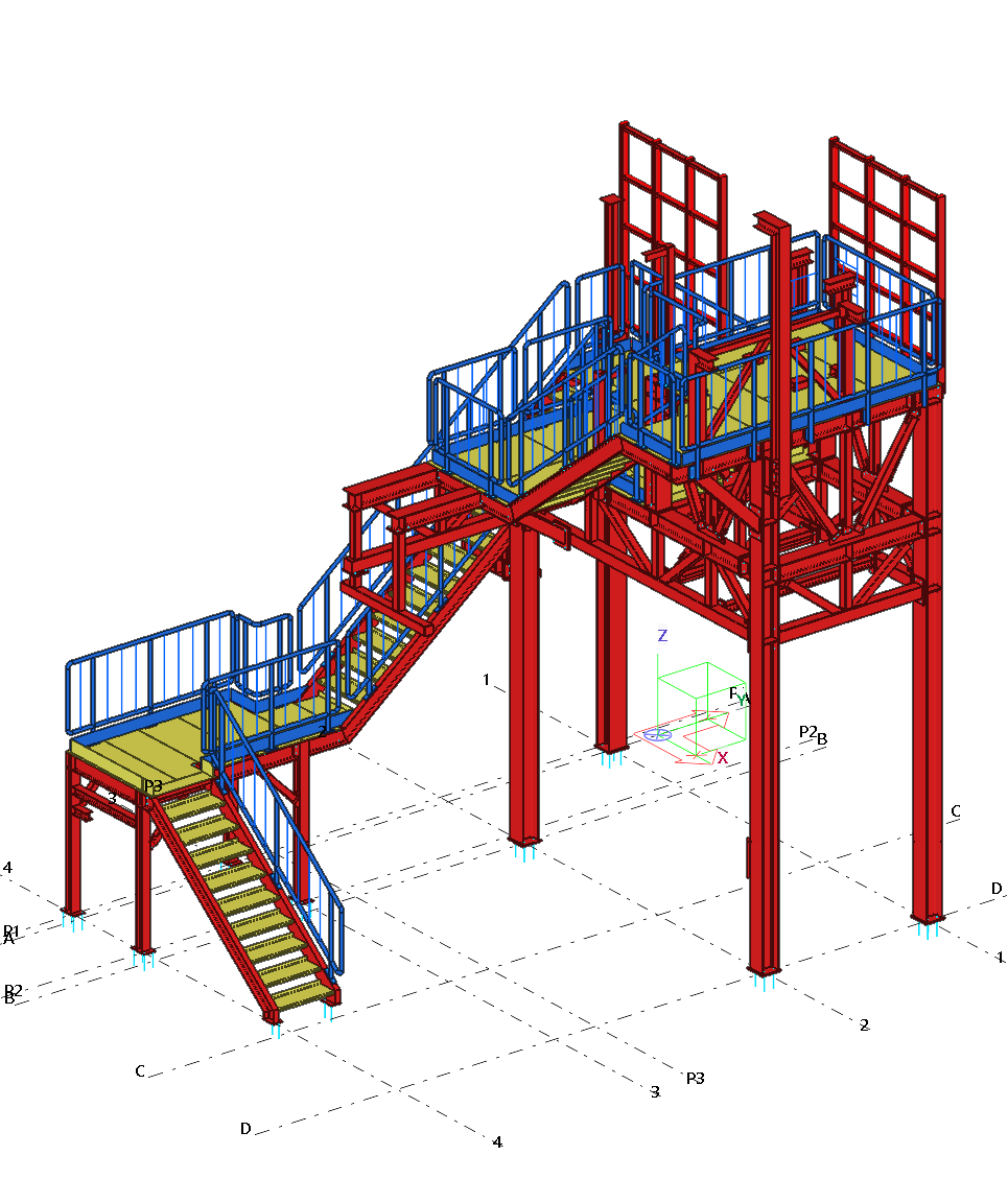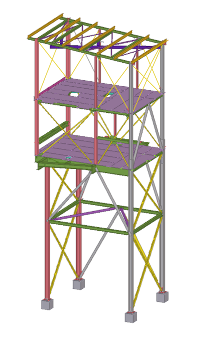 Selected models of the designed industrial structures are presented below. The 3D structural model was made in Tekla Structures and the static calculations in Dlubal RFEM or SCIA Engineer.
