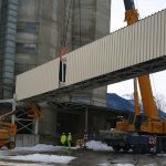 The bucket conveyor building was placed on a pre-engineered steel floor, located on the roof of a 45m high silo. Already at the design stage, the assembly of the fully assembled building on the silo roof was foreseen.