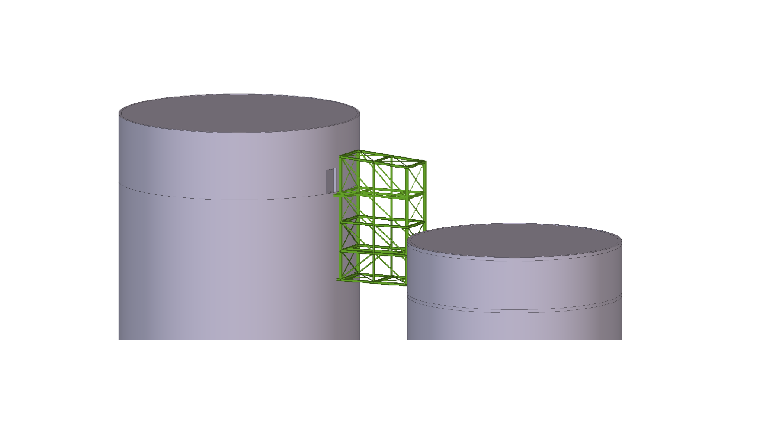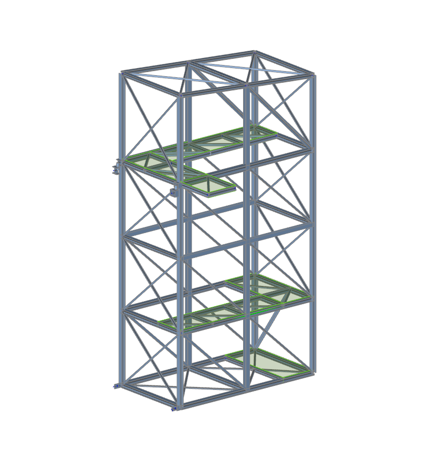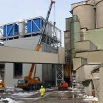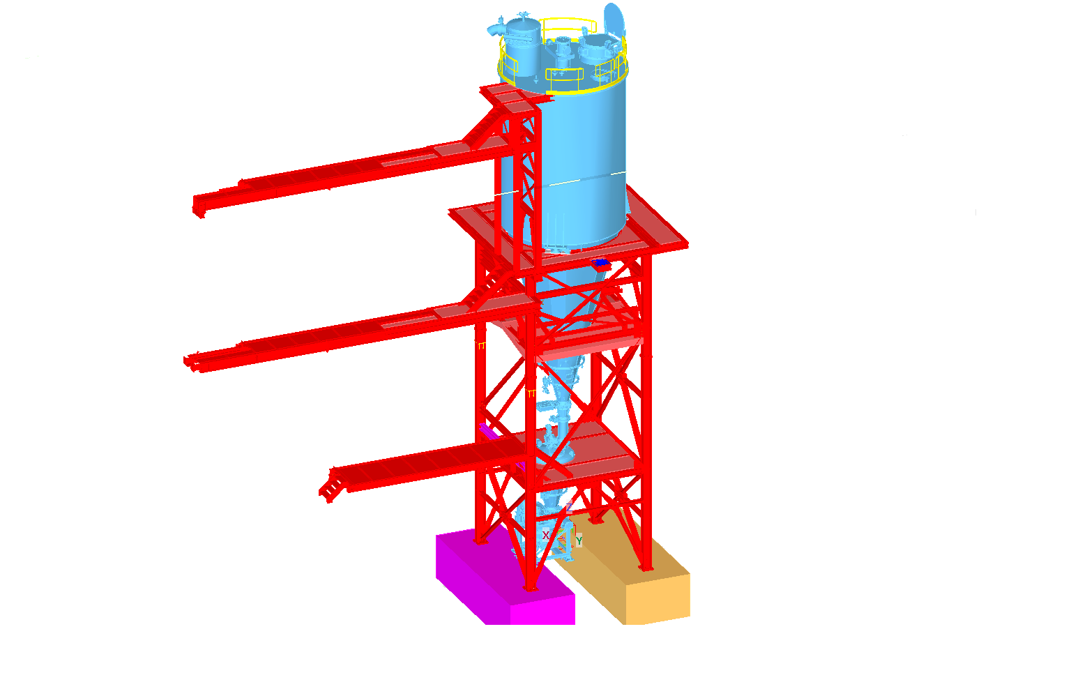 Steel support structure for the newly designed silo with a capacity of V=225m3. The silo is supported on 4 columns. Additionally, three platforms were designed in the structure to connect it with the existing buildings.