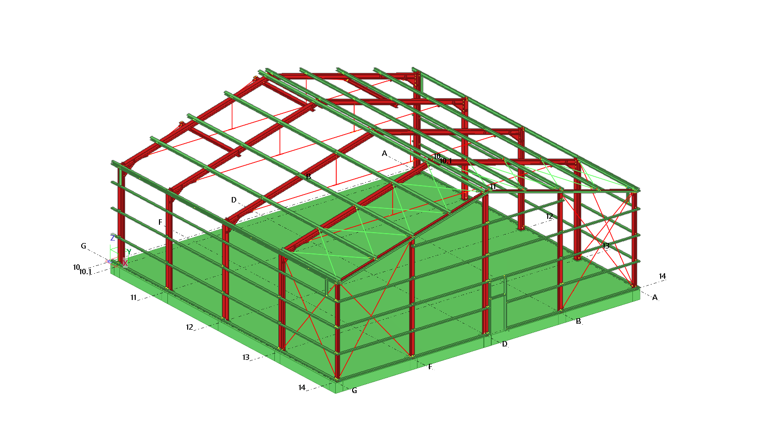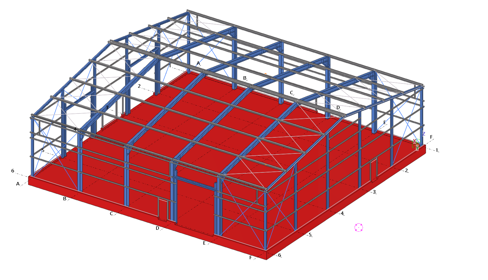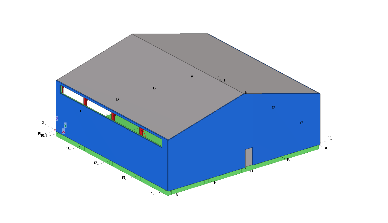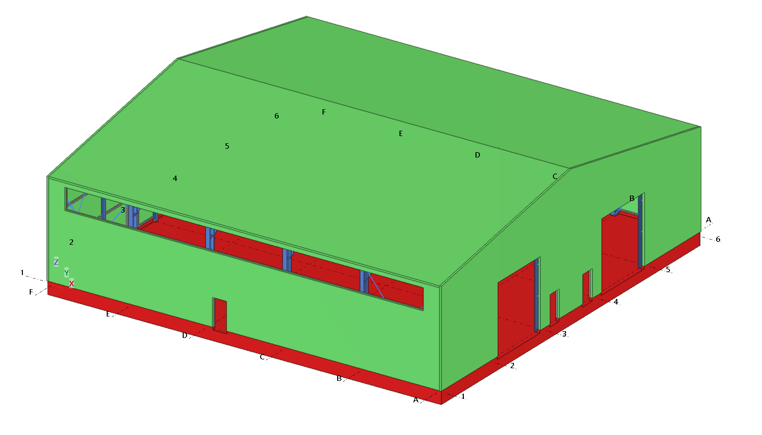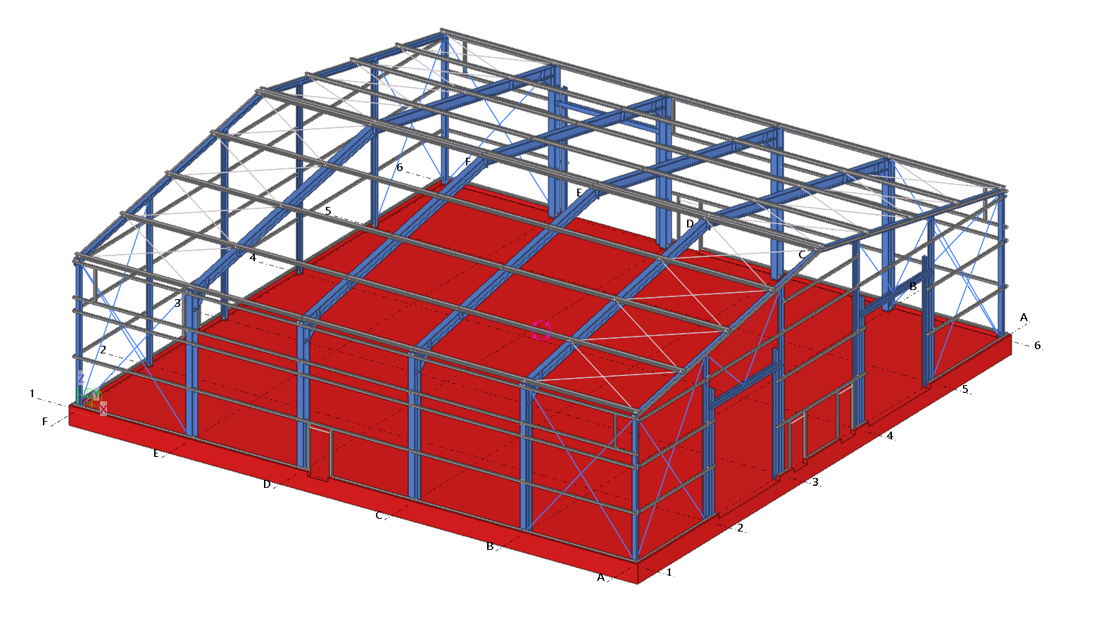 Single-bay steel warehouse hall. The main frames of the hall are made of I-beam profiles and the walls and roof are covered with sandwich panels.