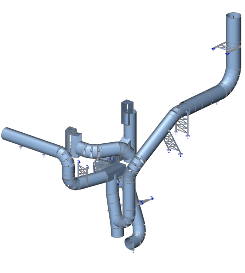 Determination of support reactions of an industrial pipeline with a pipe diameter of 2.0 to 2.5 m, located inside and outside of an industrial complex. The facility is located in a seismic area.